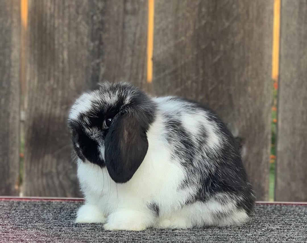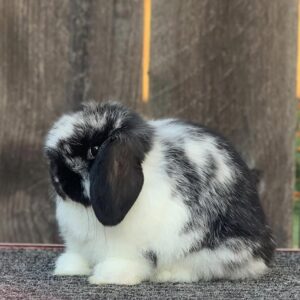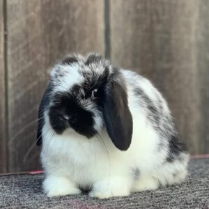 Introducing Bug, our adorable 7-week-old male Holland Lop bunny. With his signature floppy ears, compact size, and gentle temperament, Bug is a wonderful choice for families or individuals looking for a loyal and loving pet.