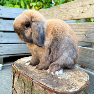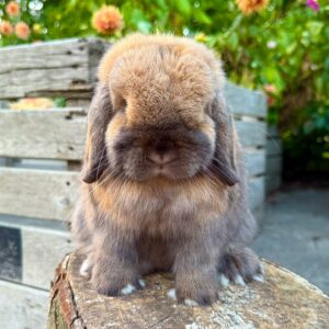 Meet Mallow, our adorable 8-week-old Mini Lop bunny with a soft, chocolate-brown coat and classic floppy ears. She has a sweet personality that shines through in both playtime and cuddle moments, making her a wonderful choice for anyone seeking a gentle and loving pet.