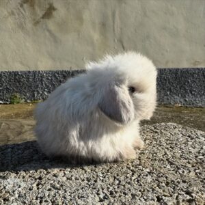 Marly is a sweet little Mini Lop girl with a cream-colored coat and the cutest floppy ears. At just 5 weeks old, she’s already showing her playful yet gentle personality. Marly enjoys exploring her surroundings and loves attention, making her a wonderful match for families, first-time rabbit owners, or anyone looking for a loving companion.