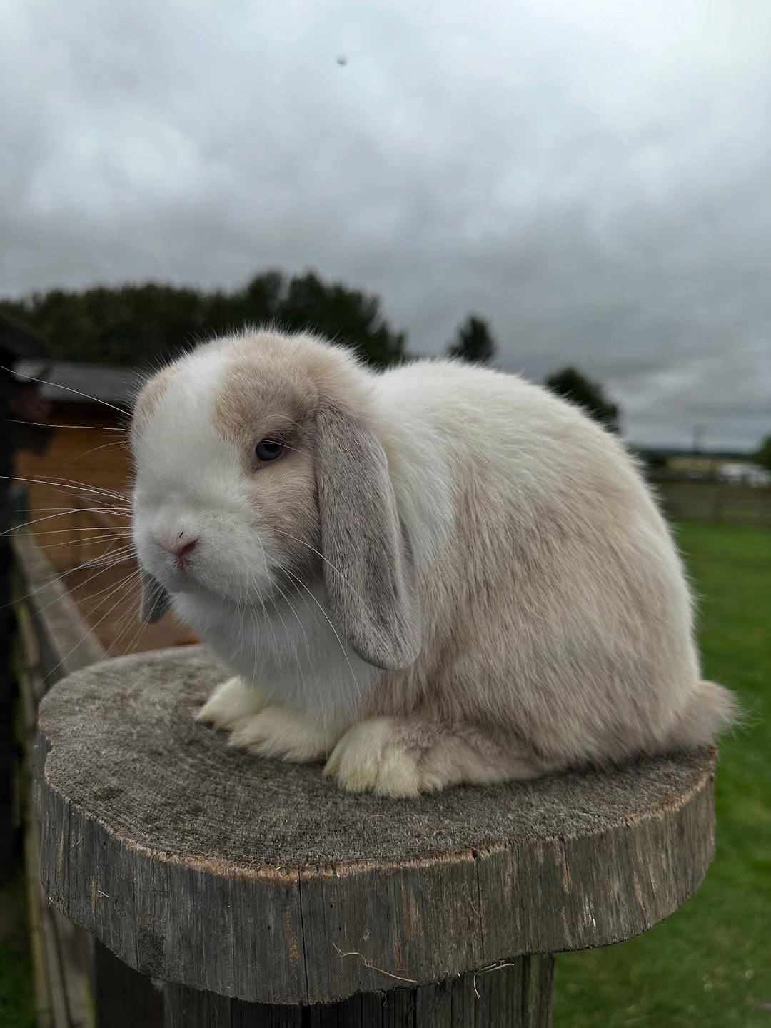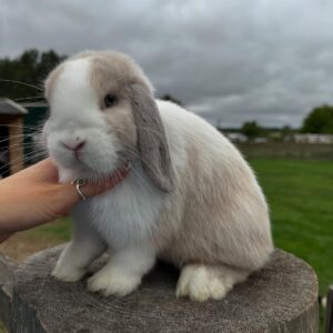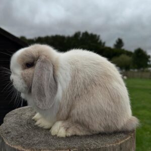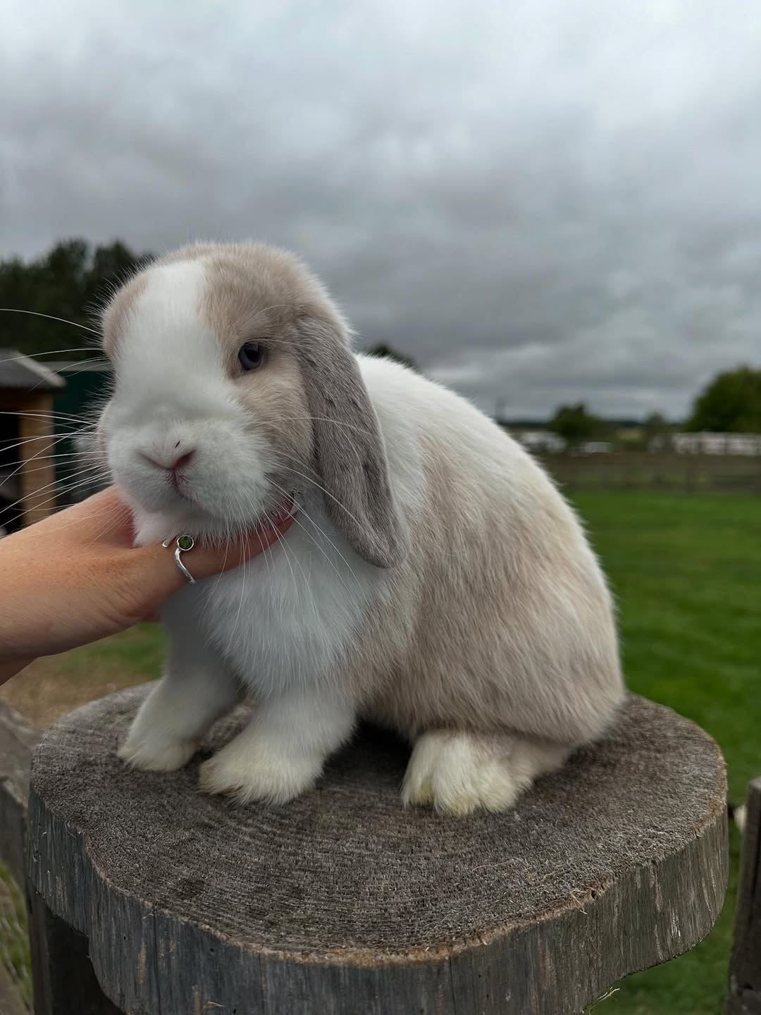 Meet Mocha, our 9-week-old female Mini Lop bunny, whose soft cream-and-white coat and floppy ears make her absolutely irresistible. With her calm and affectionate temperament, Mocha is an ideal choice for both first-time bunny owners and families looking for a gentle pet.